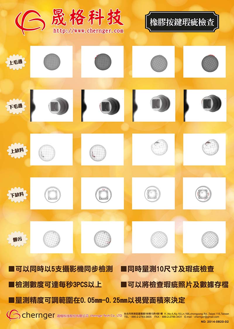 檢測項目:毛邊、缺料、凸點、異色點、變形